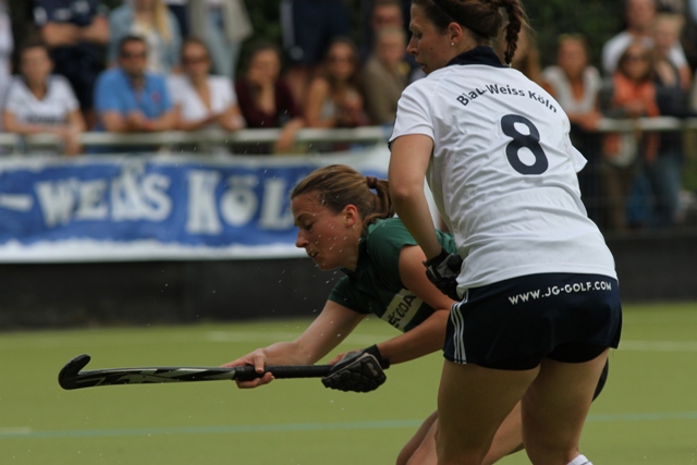 Blau Weiß Köln konnte ebenfalls seine sich zwangsläufig aus dem offensiven Raffelberger Spiel ergebenen Konterchancen nicht nutzen. So blieb es bis zur letzten Minute spannend, leider mit dem unglücklichen Ende für die Raffelberger Damen. Die Mannschaft hat eine tolle Rückrunde gespielt und den Weggang von mehreren Spielern kompensiert. Niemand hätte zu Beginn der Rückrunde daran gedacht, das die Mannschaft um den Aufstieg spielt. So ist die heutige Niederlage bitter, aber auch gleichzeitig der zweite Tabellenplatz (ein Spieltag steht noch bevor) ein Riesenerfolg für Susi und der Mannschaft. Großes Kompliment gebührt auch den Fans am Spielfeldrand. Rund 100 lautstarke Raffelberger waren nach Köln gereist und feuerten Ihre Mannschaft frenetisch an.