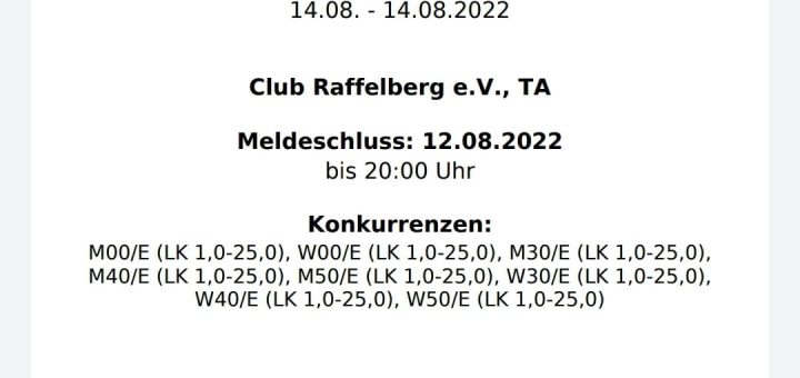 Nächstes Wochenende ist es soweit: Endlich – nach 2 Jahren Corona-Pause – wiederholt der Club Raffelberg seinen Raffelberg-Cup – ein...