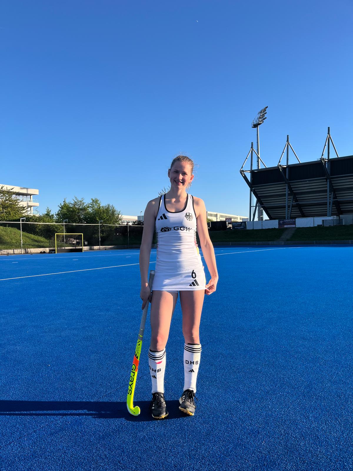 Unsere Spielerin Zoe Brewko ist aktuell mit der U16 des DHB beim Deutsch-Französischen Jugendwerk (DFJW) in Mönchengladbach im Einsatz – und feierte direkt einen gelungenen Start ins Turnier.