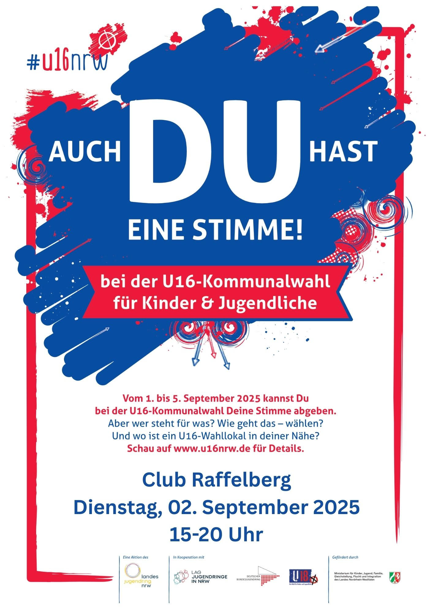 am 2. September von 15 – 20 Uhr findet eine U16-Kommunalwahl in unserem Club statt, die vom Stadtsportbund organisiert ist.